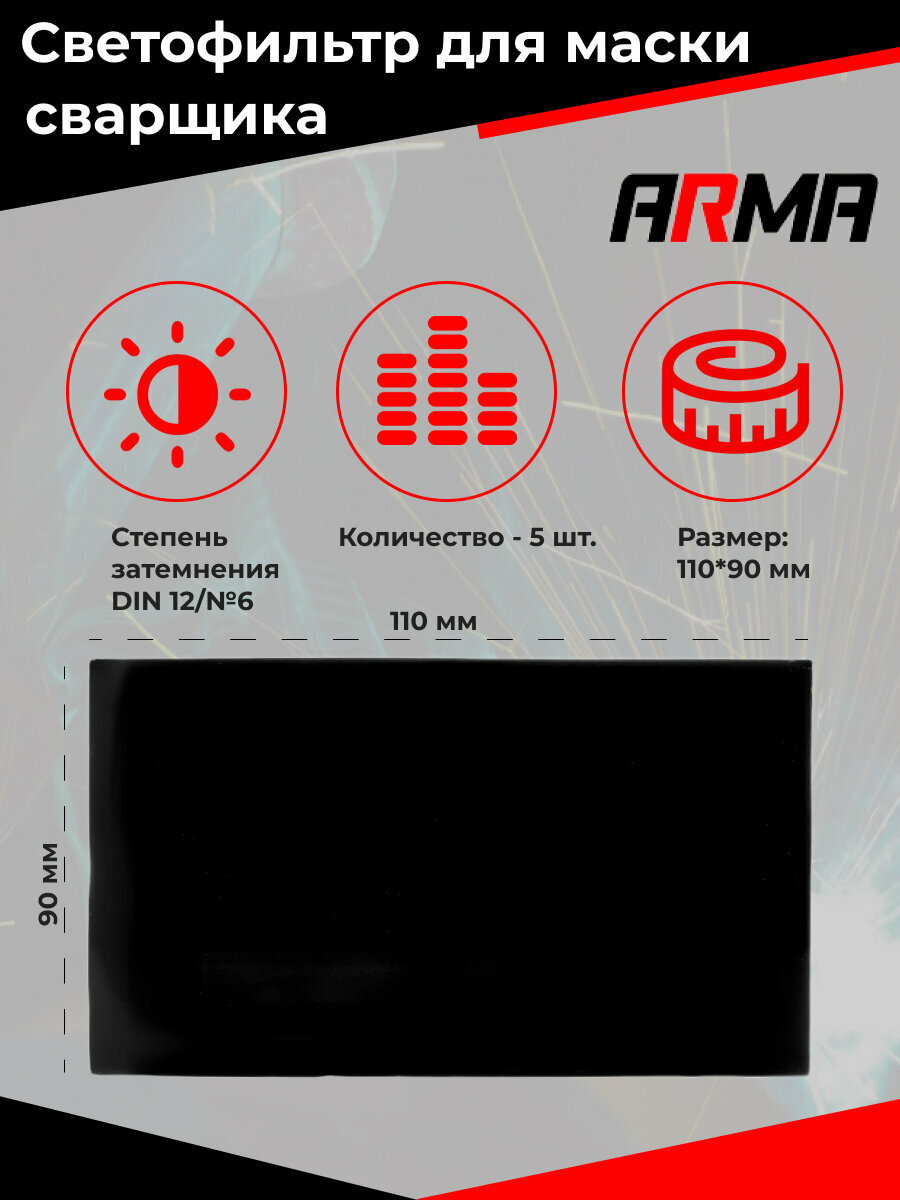 Светофильтр для маски сварщика 110х90 #12 ARMA (5шт) интересное: