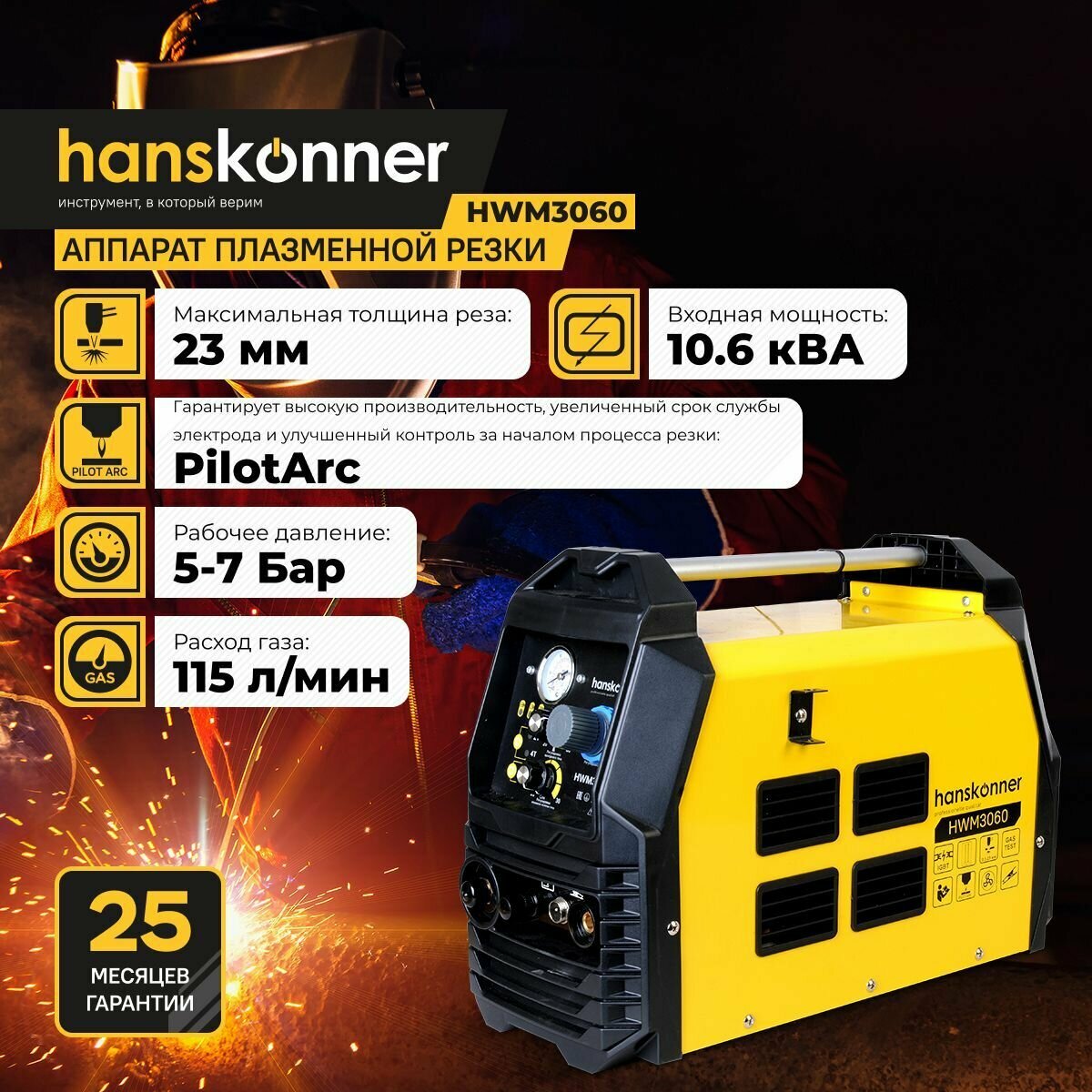 Купить Аппарат плазменной резки Hanskonner (HWM3060), 15-60 A, Pilot arc max 15 мм, ПВ 60%