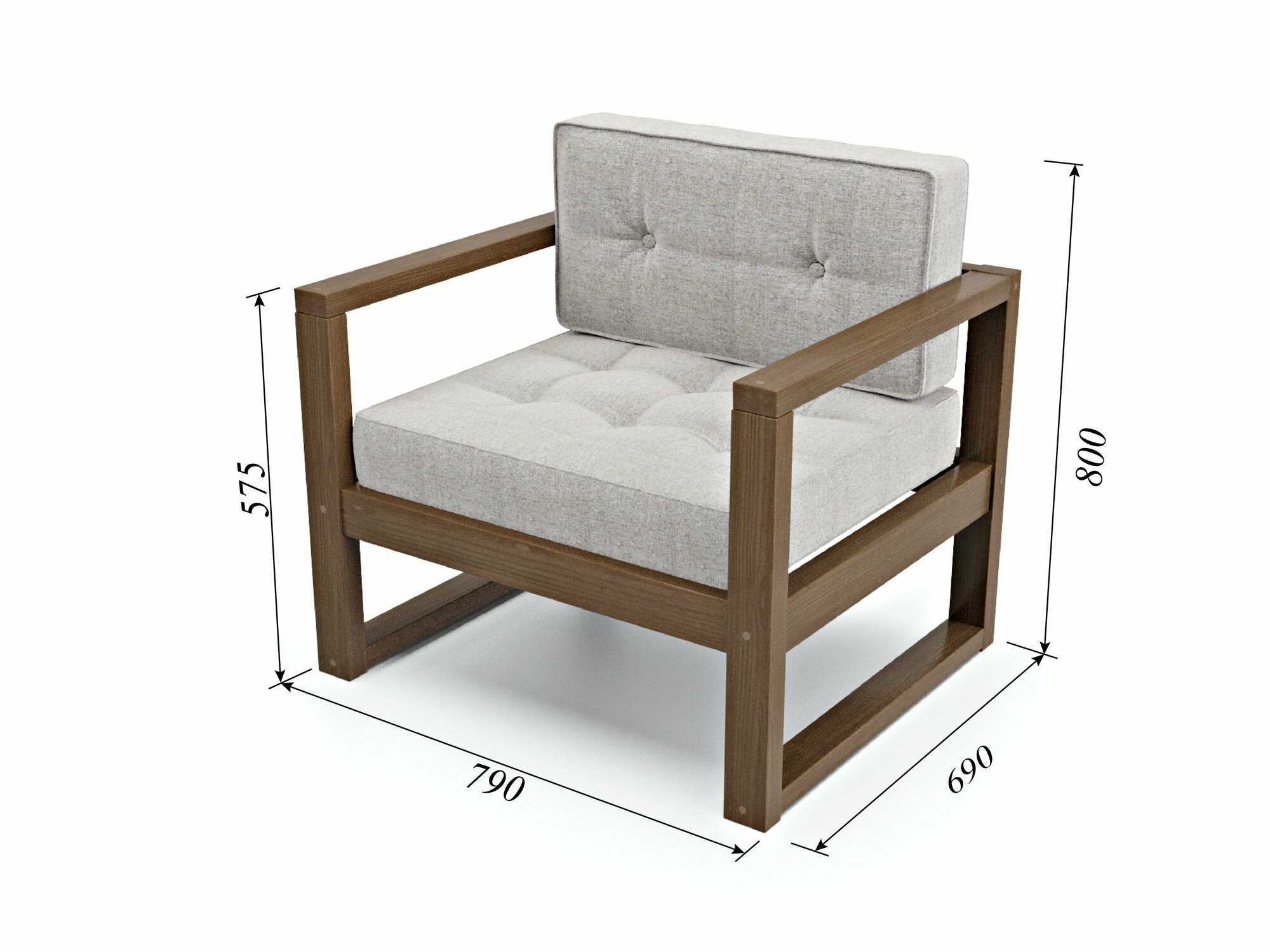 Кресло астер, серая-орех, рогожка, деревянное, мягкое, для дачи, для кафе и бара, на веранду, в террасу, для бани