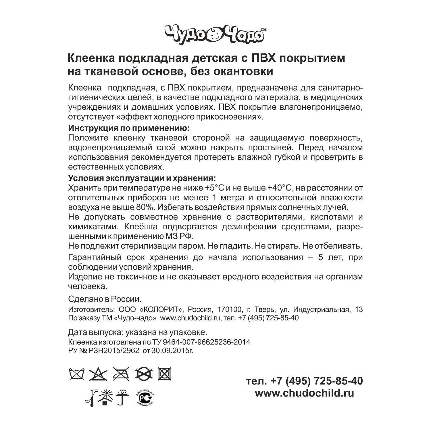 | Отзыв: | Хорошая качественная клеенка, не промокает, не шуршит, подойдёт в кроватку или коляску |
