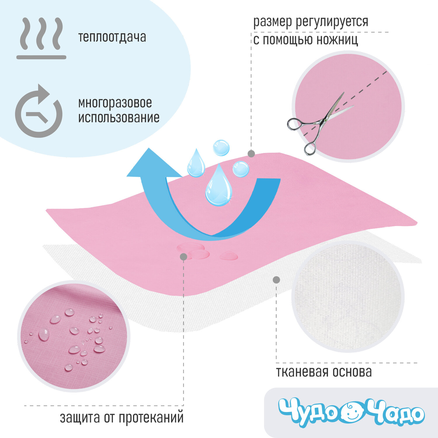Клеенка подкладная 0,5*0,7 м (б/окан., ПВХ пок) - розовая интересное: