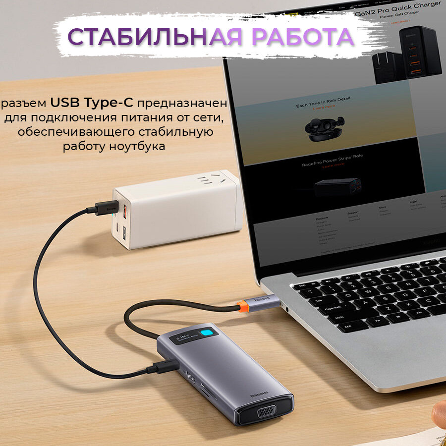 | Дополнительная информация | Концентратор серии Baseus Metal Gleam 8 в 1 |