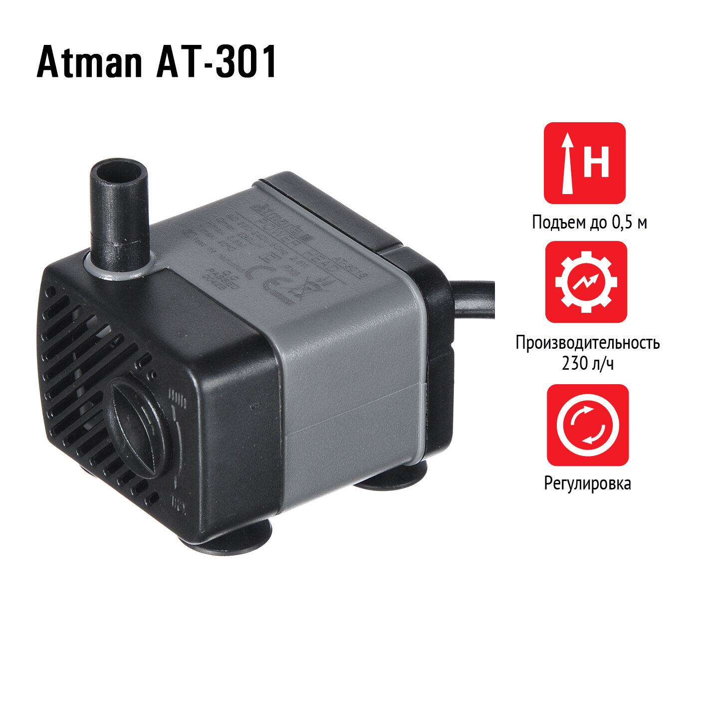 Помпа подъемная Atman AT-301, 230 л/ч, 2,5W, подъем до 0,5м