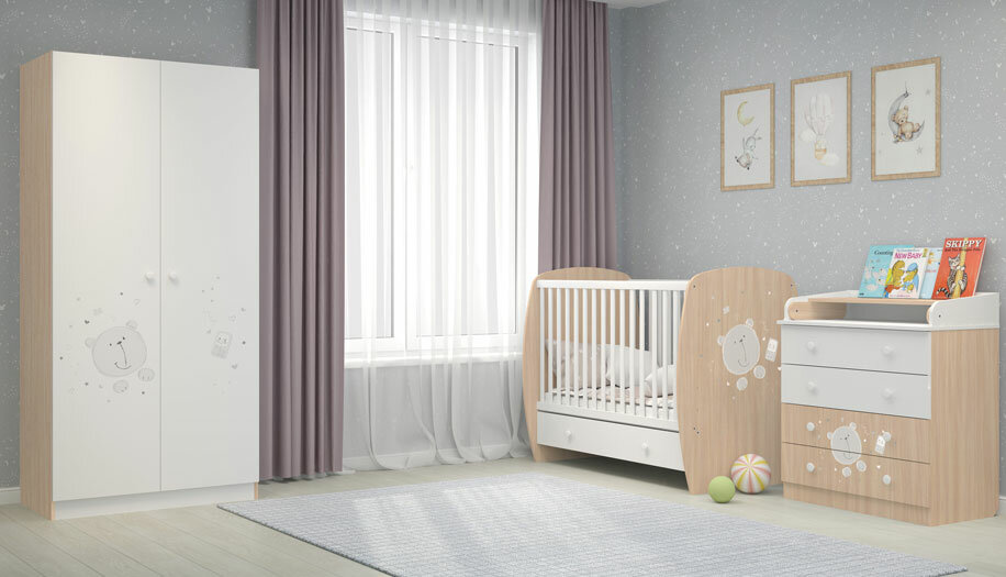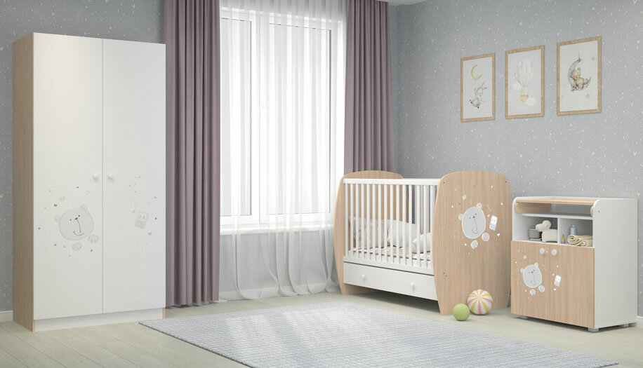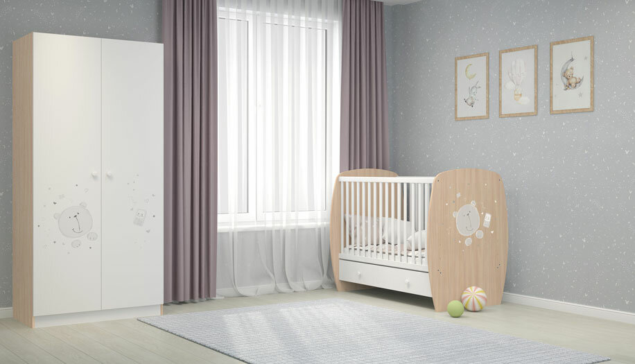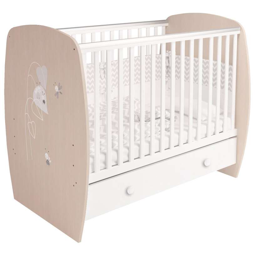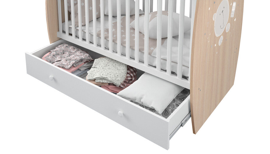 Кроватка Polini kids French 710, Teddy, с ящиком, белый-дуб пастельный интересное: