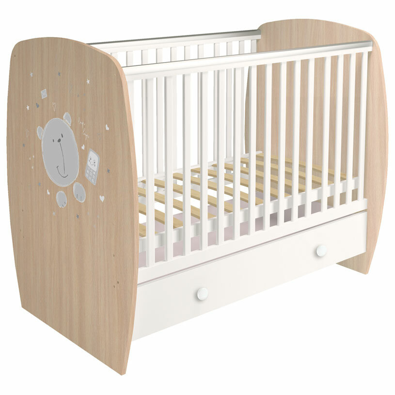 Купить Кроватка Polini kids French 710, Teddy, с ящиком, белый-дуб пастельный