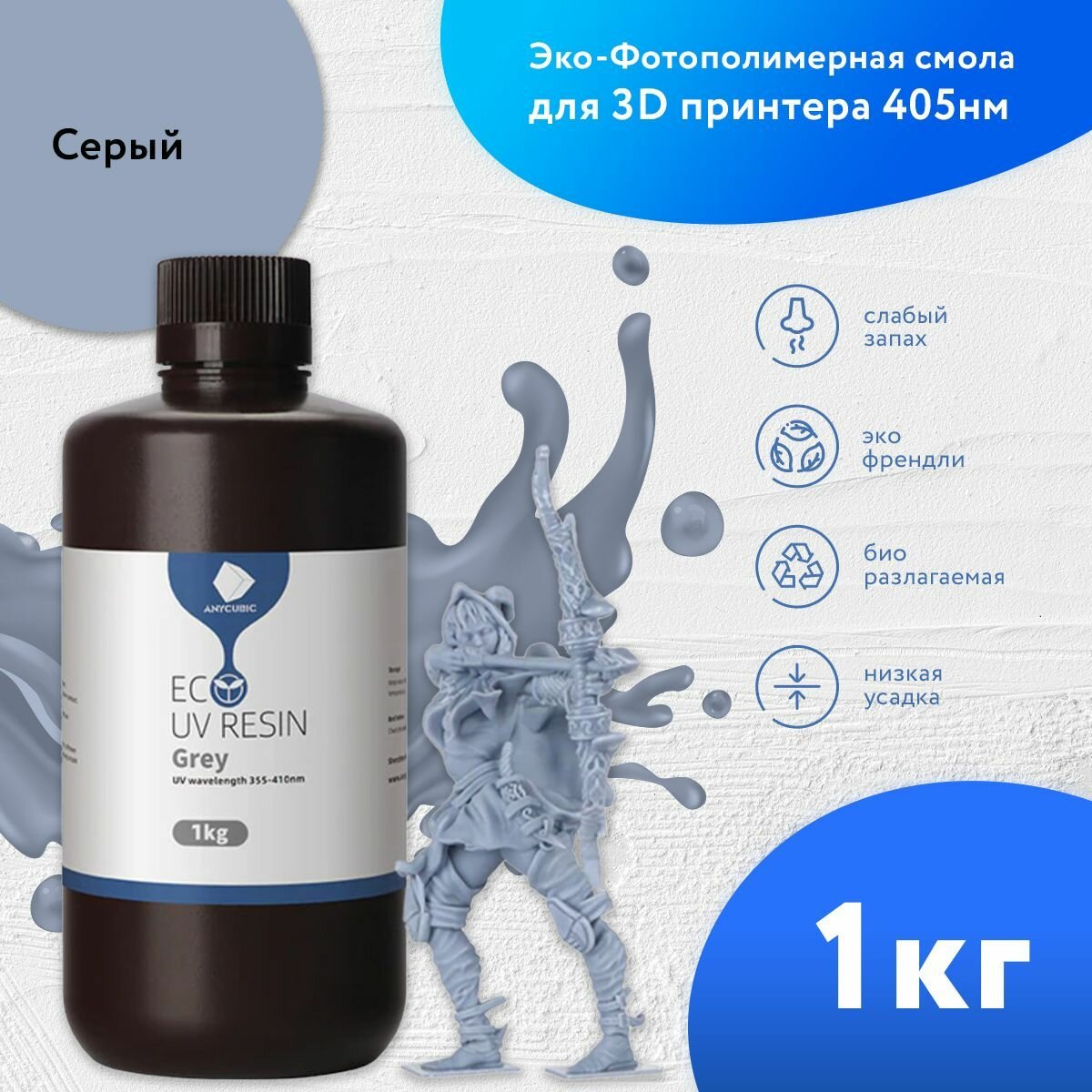 Купить Экологичная Фотополимерная смола Anycubic ECO RESIN для 3D печати на LCD/DLP принтерах 1.0 л Серый