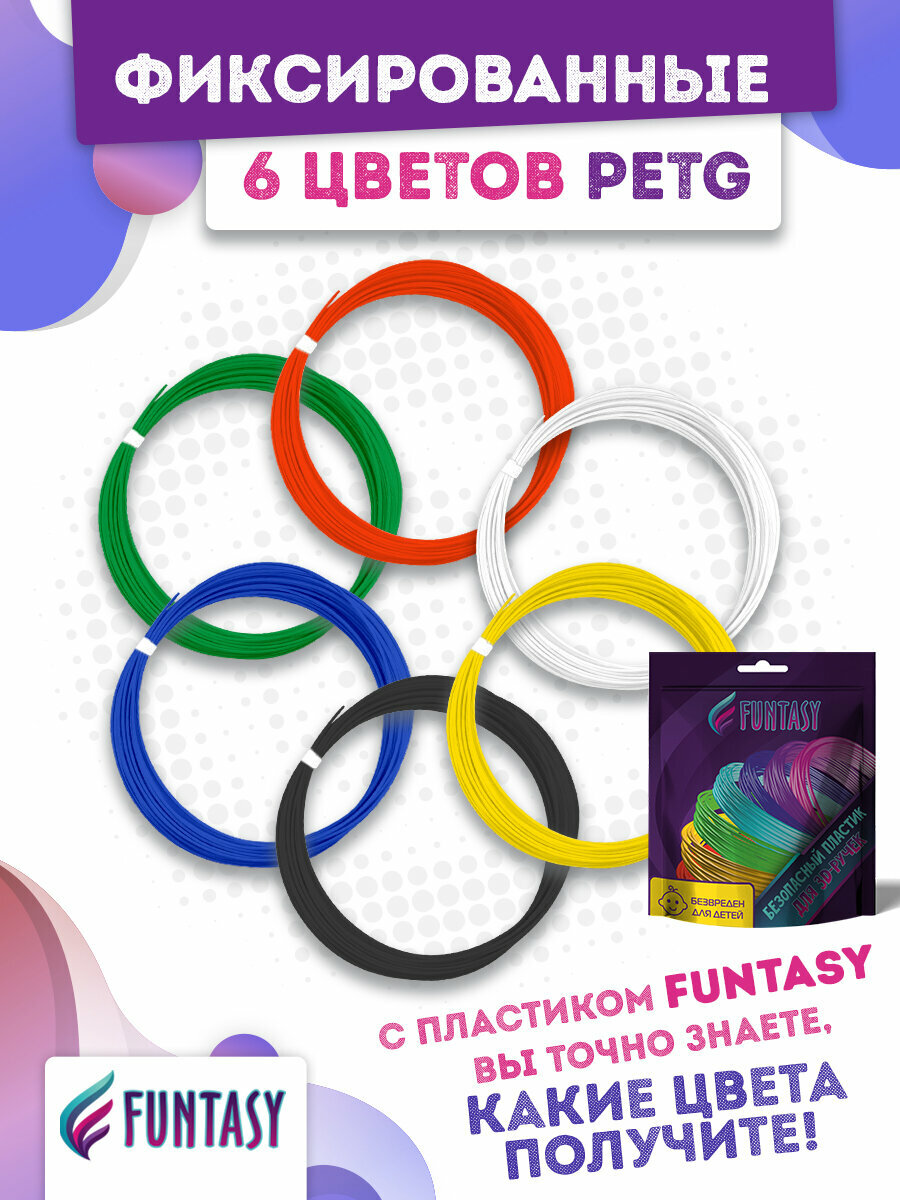 Набор PETG-пластика для 3д ручек 6 цветов по 5 метров Funtasy Пластик для 3d ручки petg / Цвета для 3д ручки/Леска пластмасса /Картриджи интересное:
