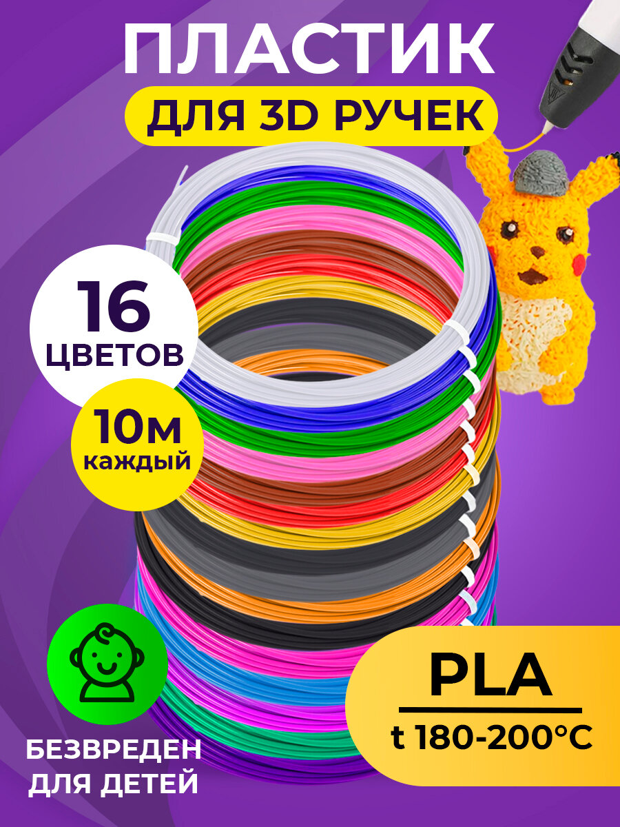 Funtasy Набор PLA-пластика для 3д ручек 16 цветов по 10 метров интересное: