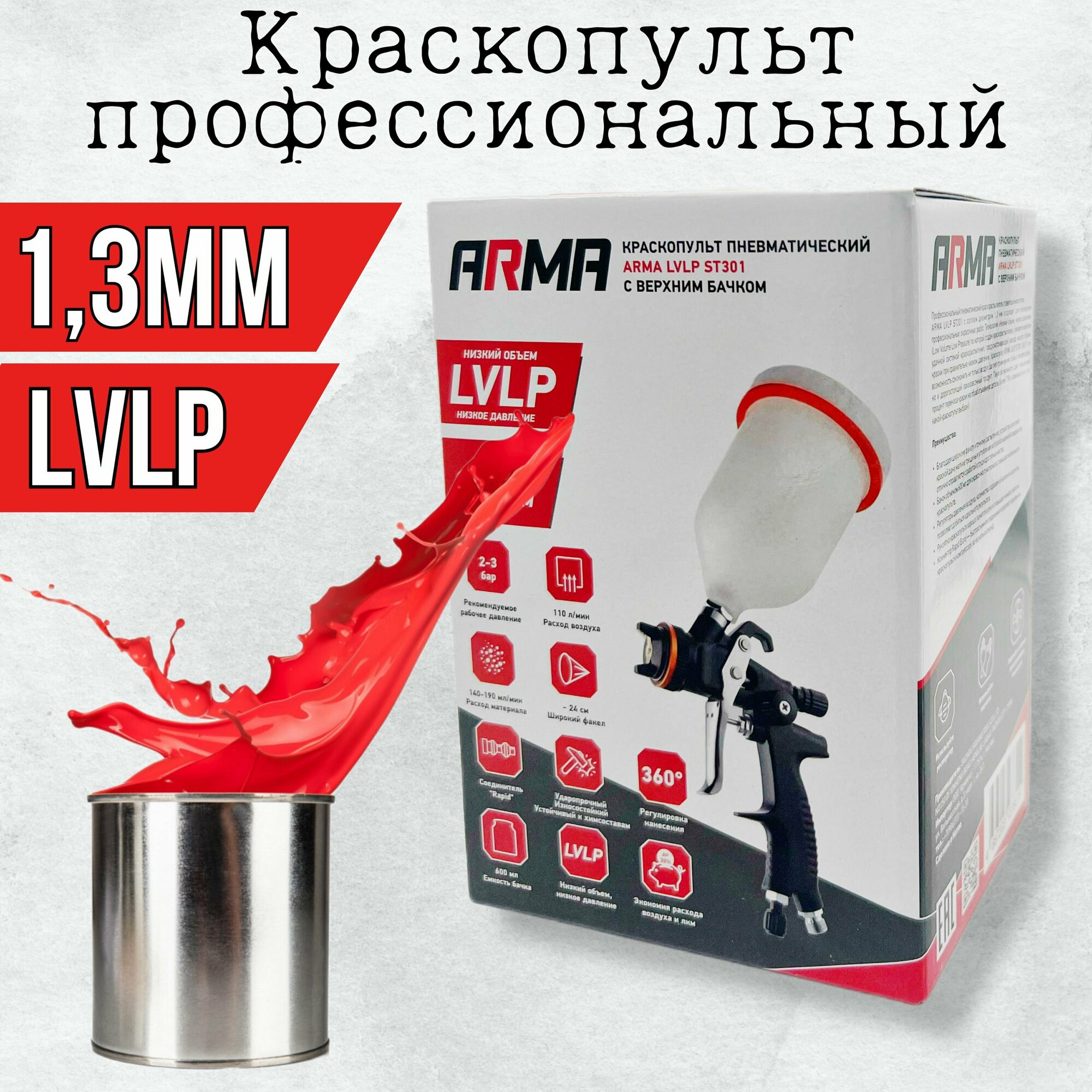 Купить Краскопульт пневматический ARMA LVLP ST301 (дюза 1.3 мм)
