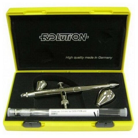 H&S Аэрограф H&S EVOLUTION SILVERLINE сопла 0.2 + 0.4 мм, бачок 2 + 5 мл, ограничитель подачи краски интересное: