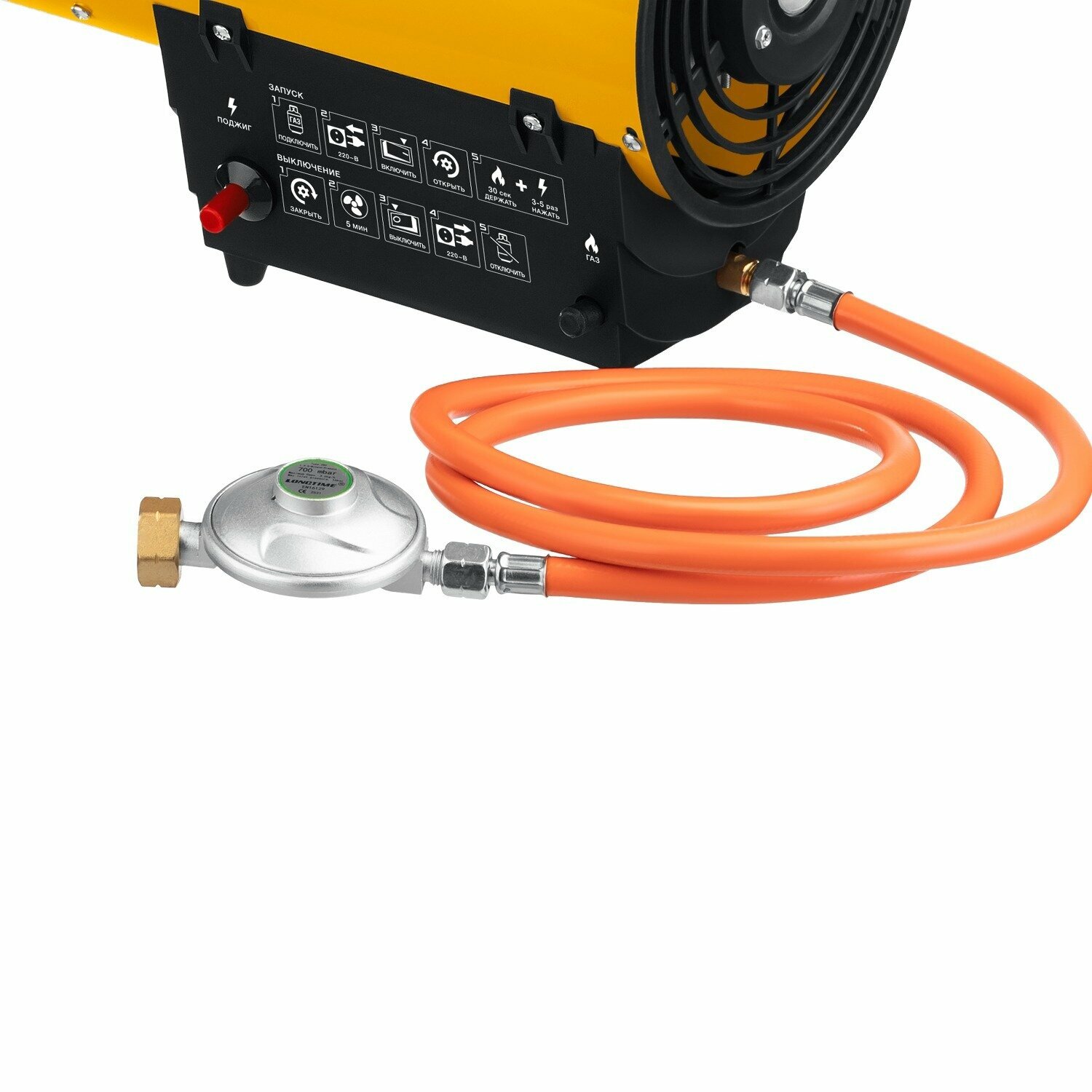 | Подробная комплектация | Тепловая пушка - 1 шт. Газовый шланг с редуктором - 1 шт. Ручка - 1 шт. Винт крепёжный - 2 шт. |