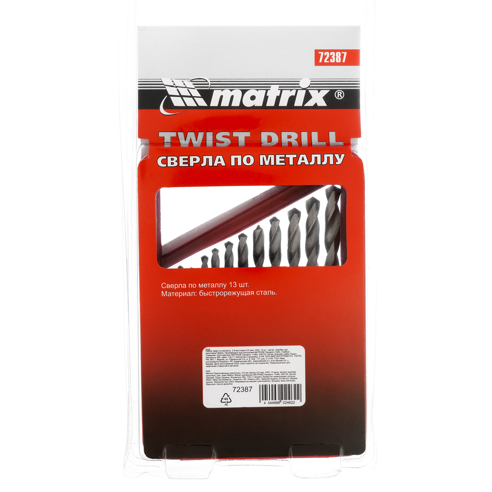 Набор сверл по металлу Matrix 72387, 13 предметов, 2-8мм