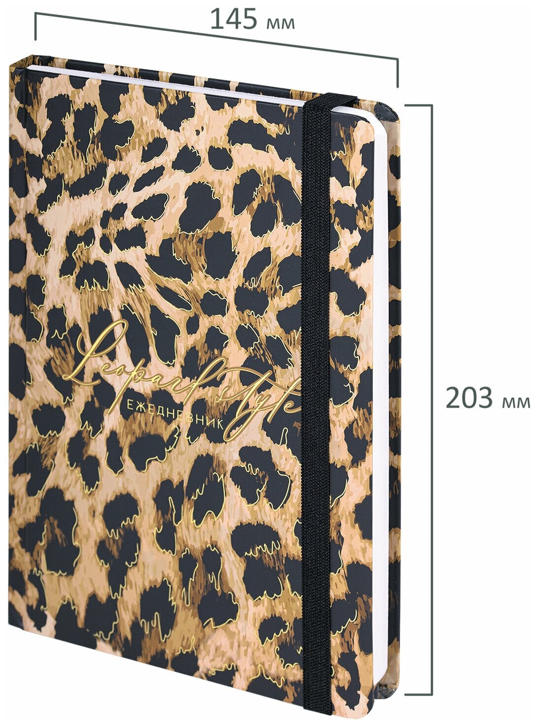 Ежедневник недатированный с резинкой А5 (145х203 мм), BRAUBERG, твердый, фольга, 128 л., "Leopard", 114561