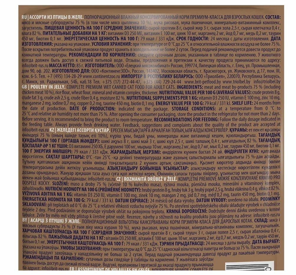 | Минусы: | Кошка, которая ела корм брит на протяжении 2 лет, перестала его есть. Корм производился на территории Чехии, то что сейчас продают - произведено в России. Кошка перестала есть этот корм. Если дать корм импортированных партий, все в порядке, кошка снова ест. Корм стал иметь неприятный резкий запах, даже у одинаковых этикеток (по сравнению с импортом). Представитель Брита уверяет, что все то же самое - НЕТ, далеко нет. Даже сам пакетик не имеет нормального устойчивого дна - следствие удешевления производства, но стоит как нормальный корм, привезенный с нормальной фабрики. купил 3 коробки, не знаю, что теперь с ним делать, кошка его не ест. Не рекомендую продукцию в мягких пакетиках фирмы Брит, произведенные в России. |