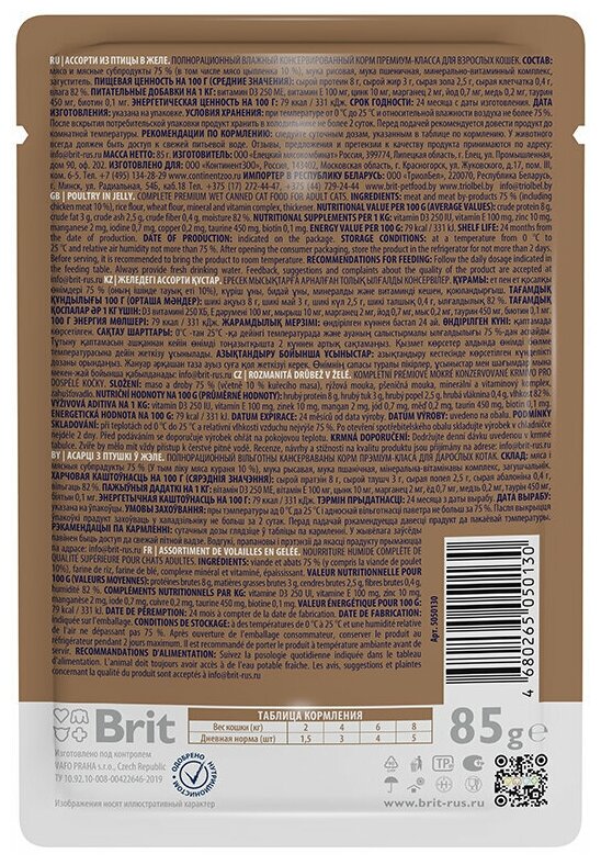 Брит Премиум 85г ассорти из птицы в желе пауч для взрослых кошек 14шт/1уп