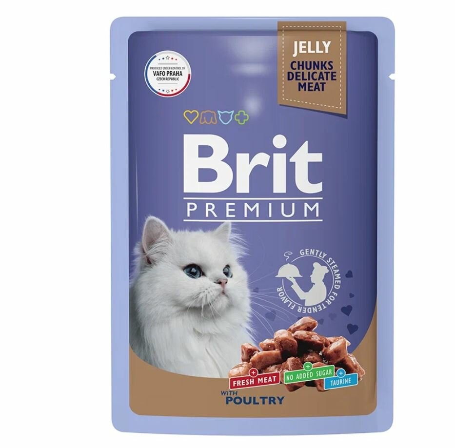 BRIT PREMIUM, влажный корм для кошек. Пауч для взрослых кошек, Ассорти из птицы в желе, 85г