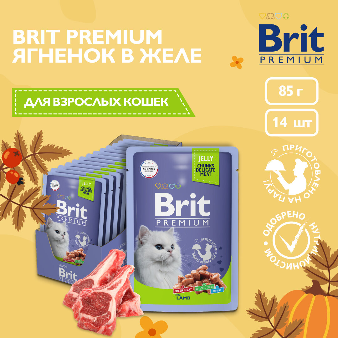 Корм для взрослых кошек BRIT Premium Ягненок в желе 14шт.*85г