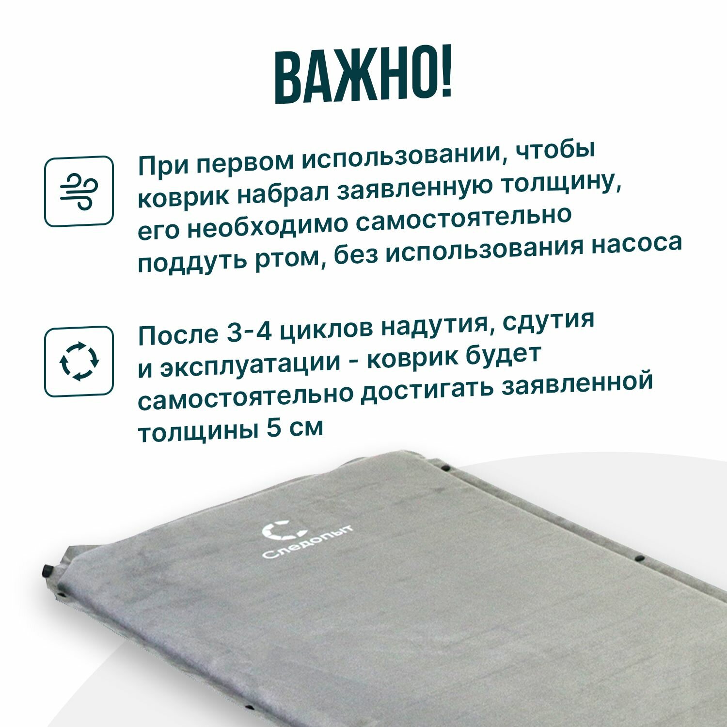 Коврик самонадувающийся туристический 5 см толщина "следопыт" 188x66x5 cм, стандарт/ Походный матрас кемпинговый/ Коврик в палатку самонадувной
