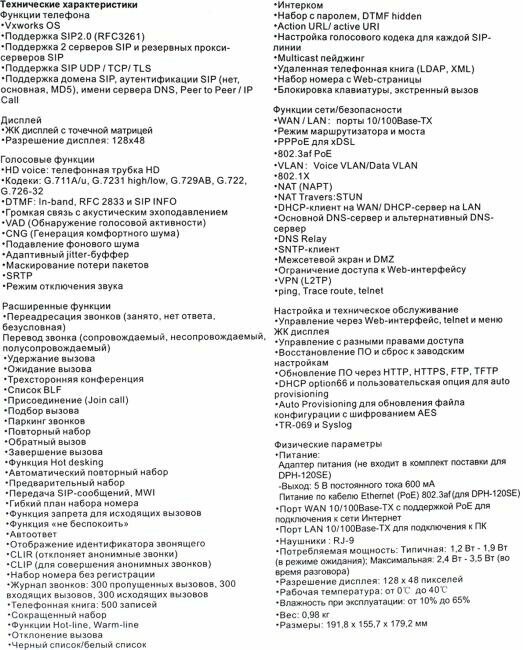 Телефон IP Dph-120se/f2b VoIP Phone with PoE support, 1 10/100Base-TX WAN port and 1 10/100Base-TX L .