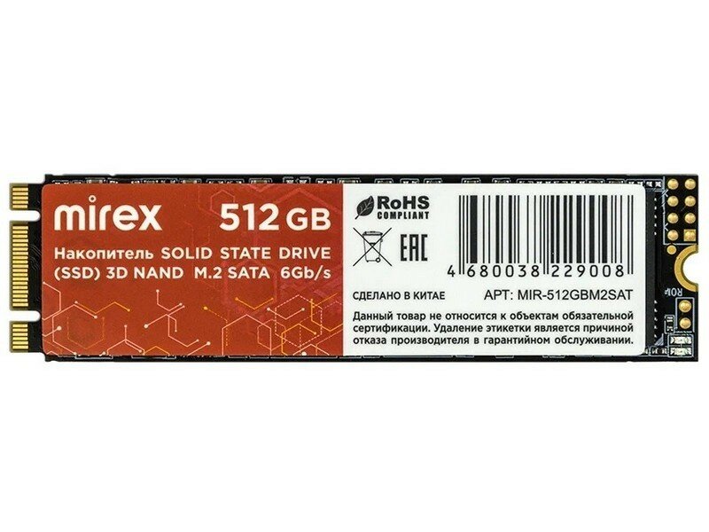 Твердотельный диск 512GB Mirex N535N, M.2 2280, SATA III, [R/W - 520/420 MB/s] TLC интересное: