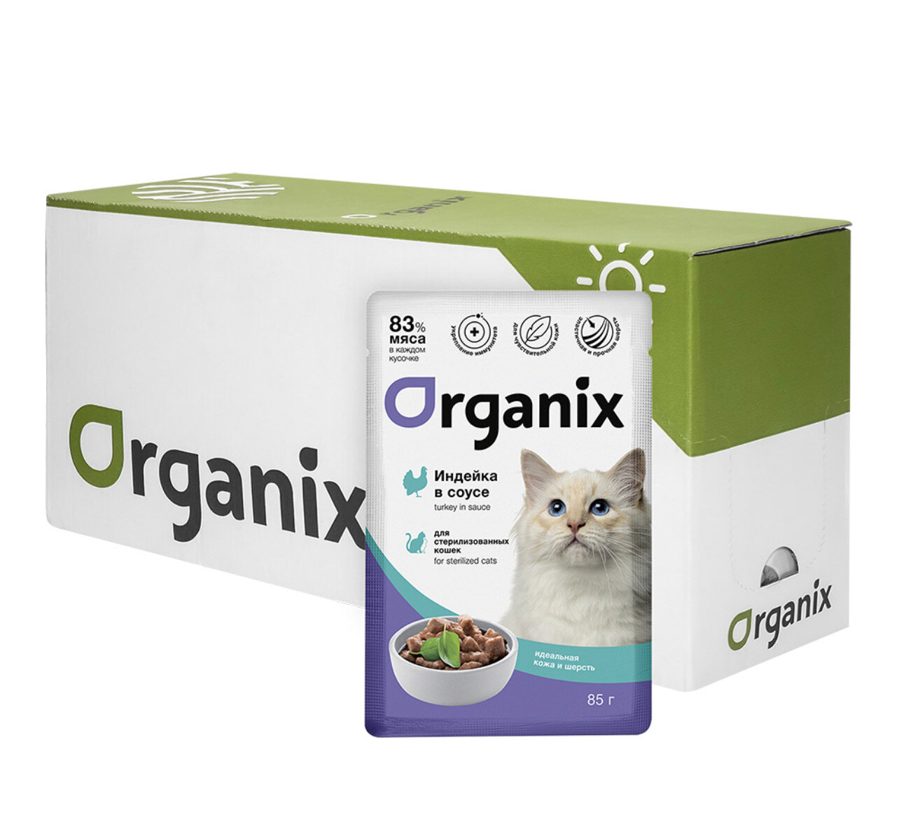 Купить ORGANIX корм влажный "Индейка в соусе" в паучах для стерилизованных кошек и кастрированных котов, 85 гр х 25 шт.
