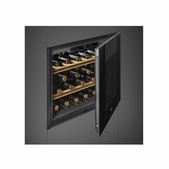 SMEG CVI121B3 Холодильный шкаф для вина встраиваемый, высота 45 см, стекло Deep Black (чёрное)