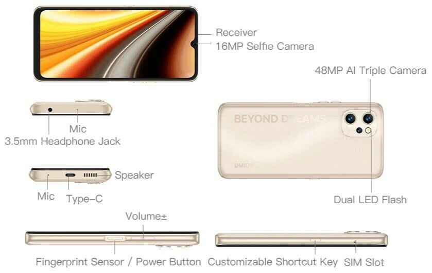 UMIDIGI Power 7 Max 6/128Gb Sunbeam Gold (C.POW7-A-J-192-G-Z03)