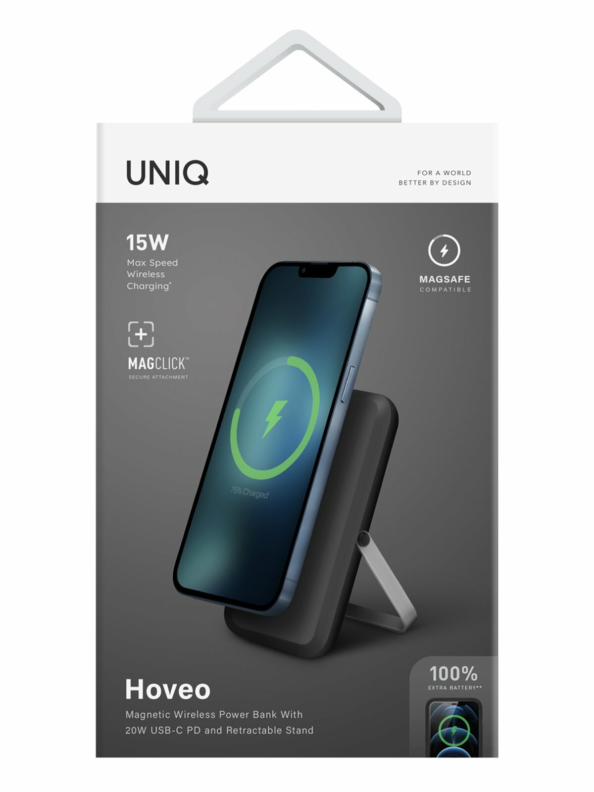 Uniq АКБ внешняя HOVEO 5000W Magnetic wireless 15W USB-C PD 20W with stand Grey интересное: