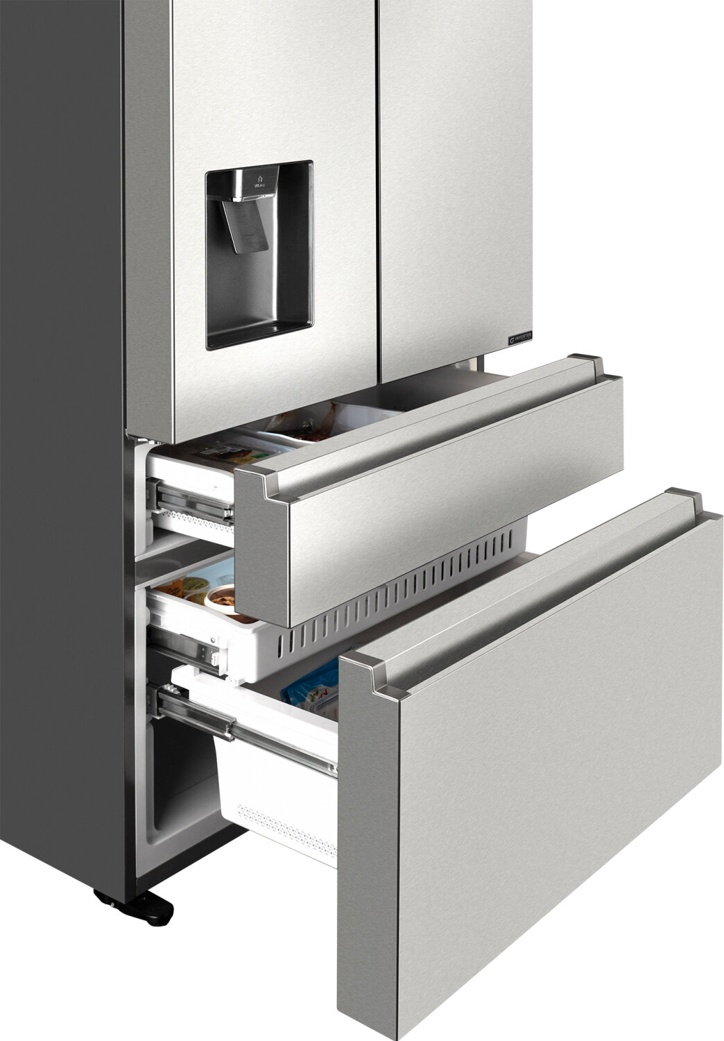 Отдельностоящий холодильник с Wi-Fi и подачей воды Weissgauff WFD 585 NoFrost Premium Ecofresh Water Dispenser трехкамерный French Door, 3 года гарантии, Большой объём, Супер заморозка и Супер охлаждение, Сенсорное управление, Дисплей, LED освещение