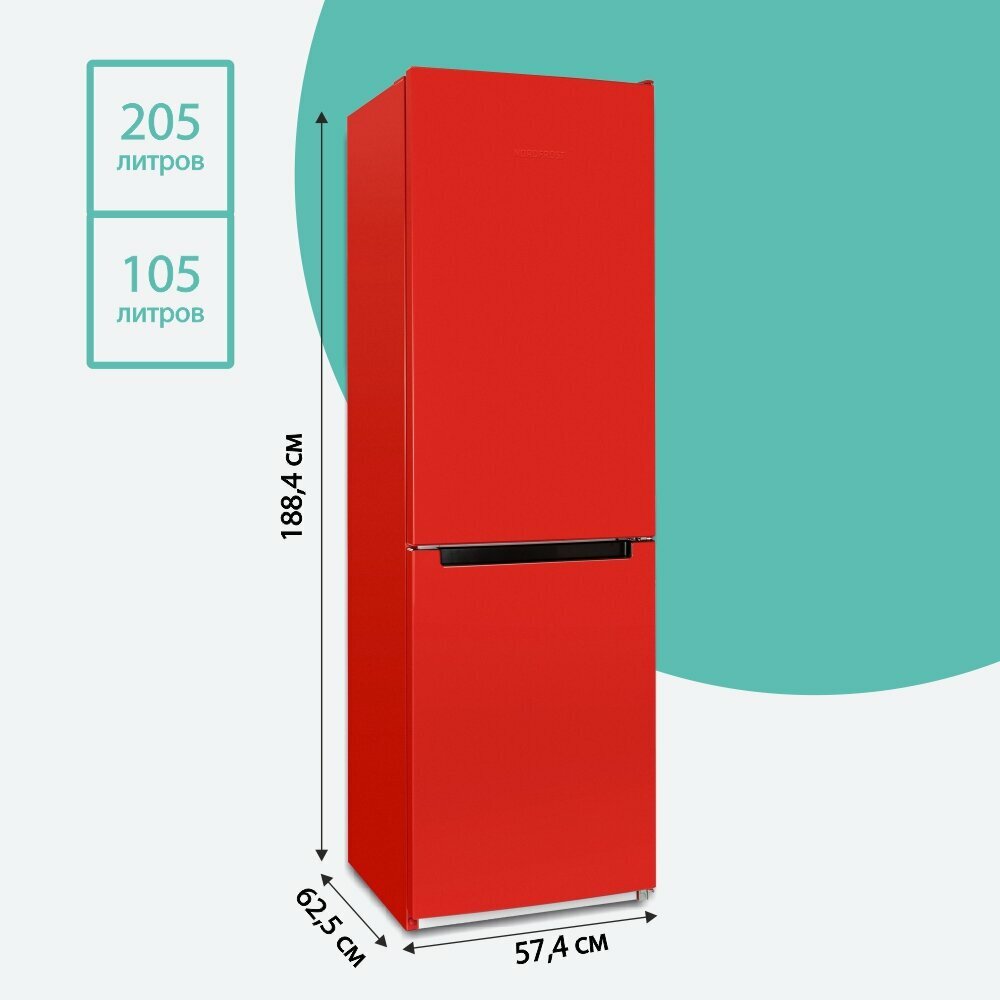 Купить Холодильник NORDFROST NRB 162NF R двухкамерный,красный, No Frost в МК, 310 л