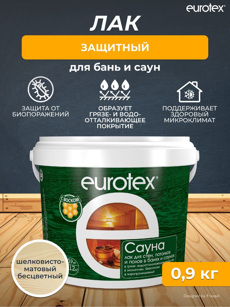 Лак для бань и саун Eurotex Сауна, шелковисто-матовый, 0,9 кг