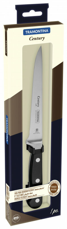 Купить Нож TRAMONTINA Century 24023/106, филейный, для мяса, 152мм, заточка прямая, стальной, черный