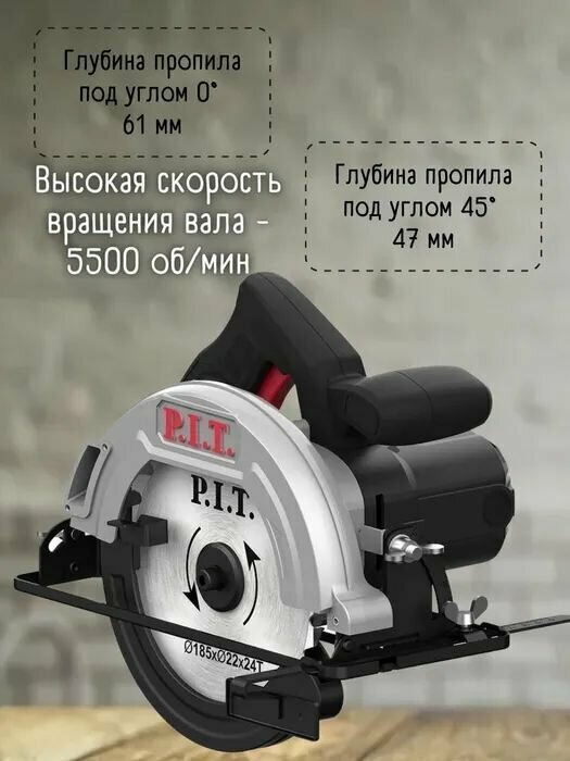 Пила циркулярная электрическая P.I.T. PKS185-C4 185мм 1200Вт