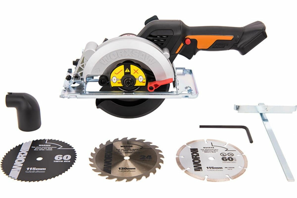 Циркулярная аккумуляторная бесщеточная мини-пила 120 мм 20В WORX worxsaw WX531.9, без АКБ и ЗУ