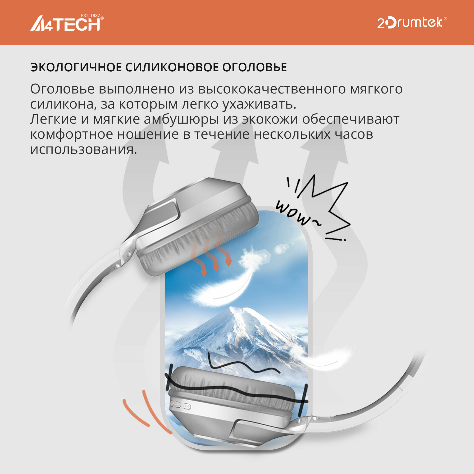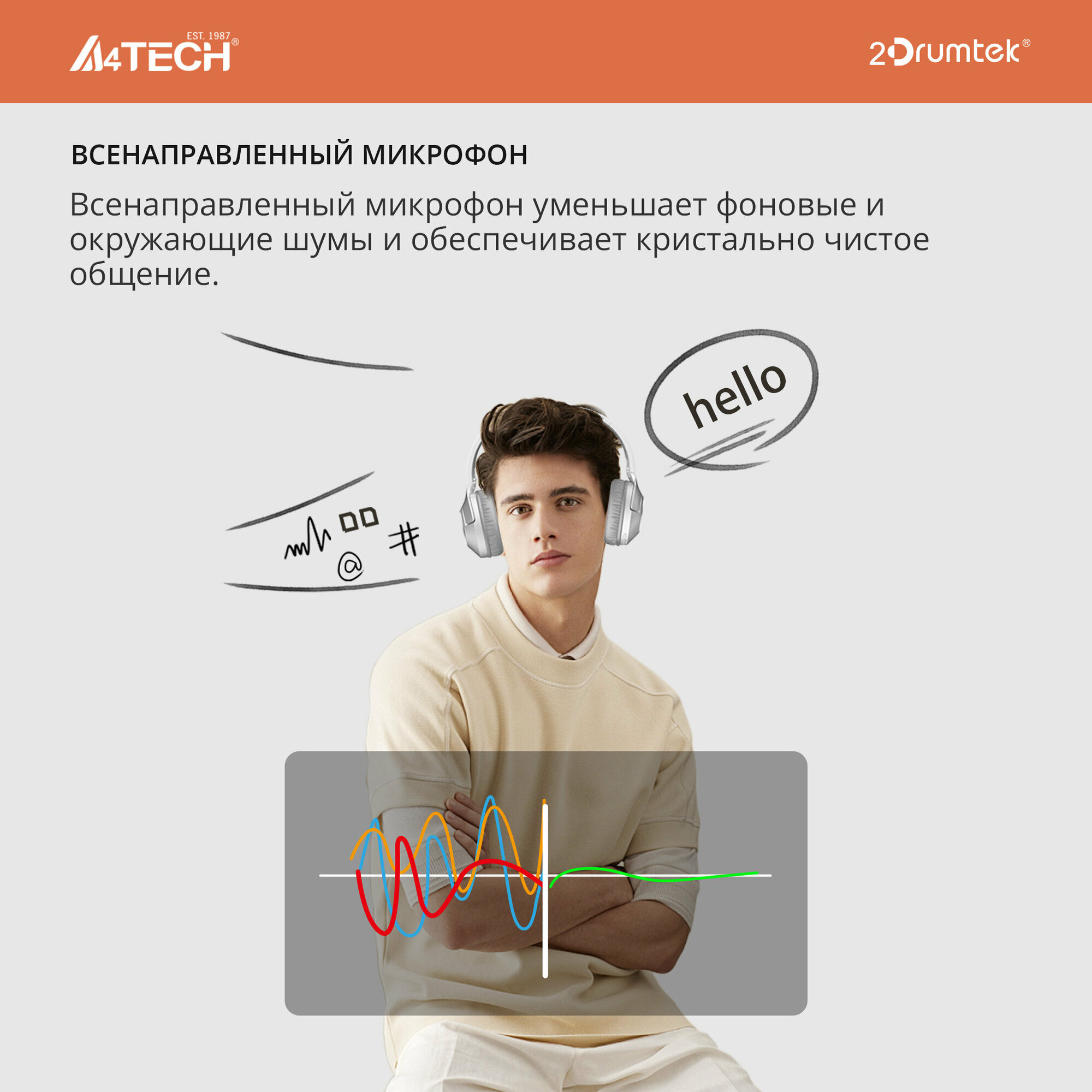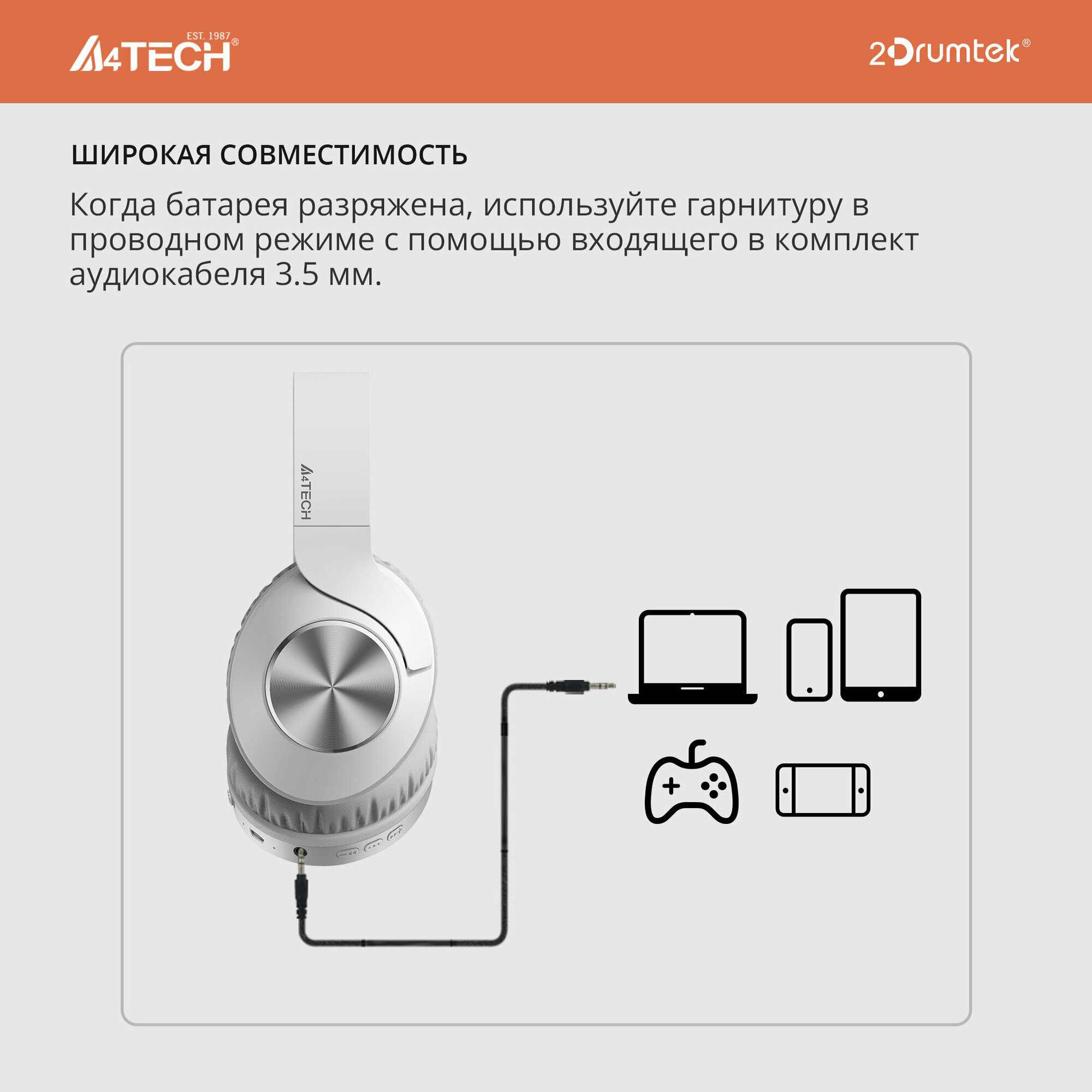 Наушники A4Tech 2Drumtek BH300 беспроводные, с микрофоном, Bluetooth, бело-серый
