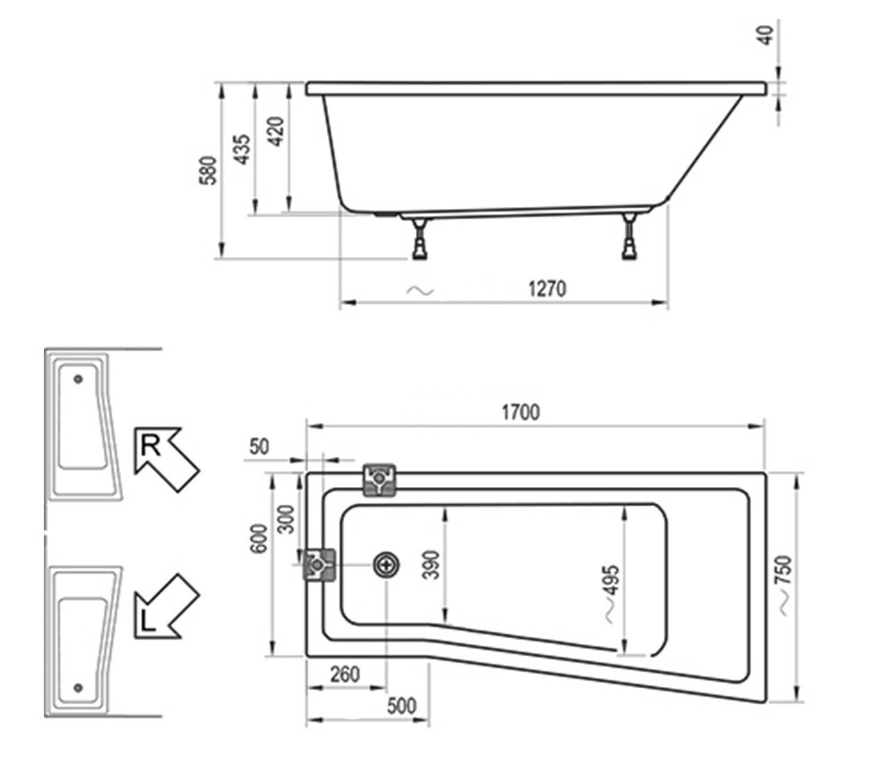 BeHappy II 170х75см, акриловая ванна, правая, арт. C951000000, Ravak