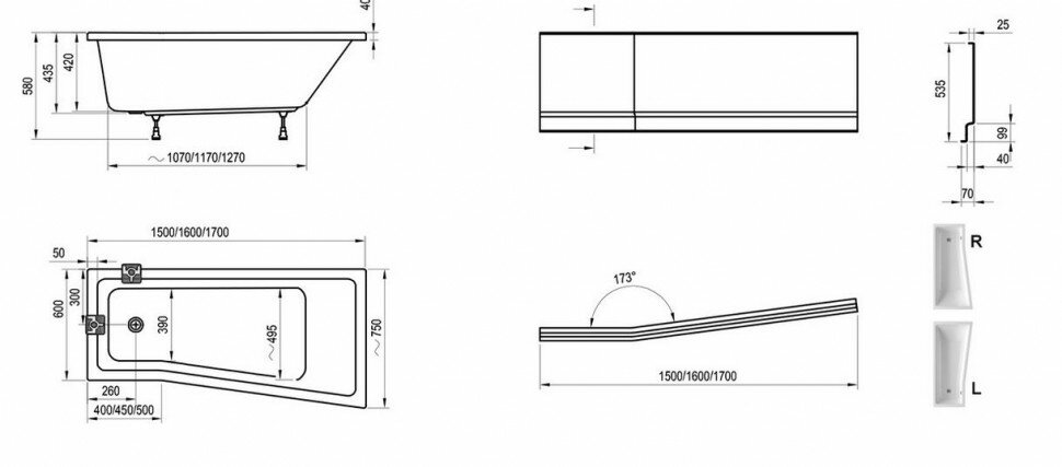 Ванна акриловая Ravak Be Happy II 170 левая C941000000