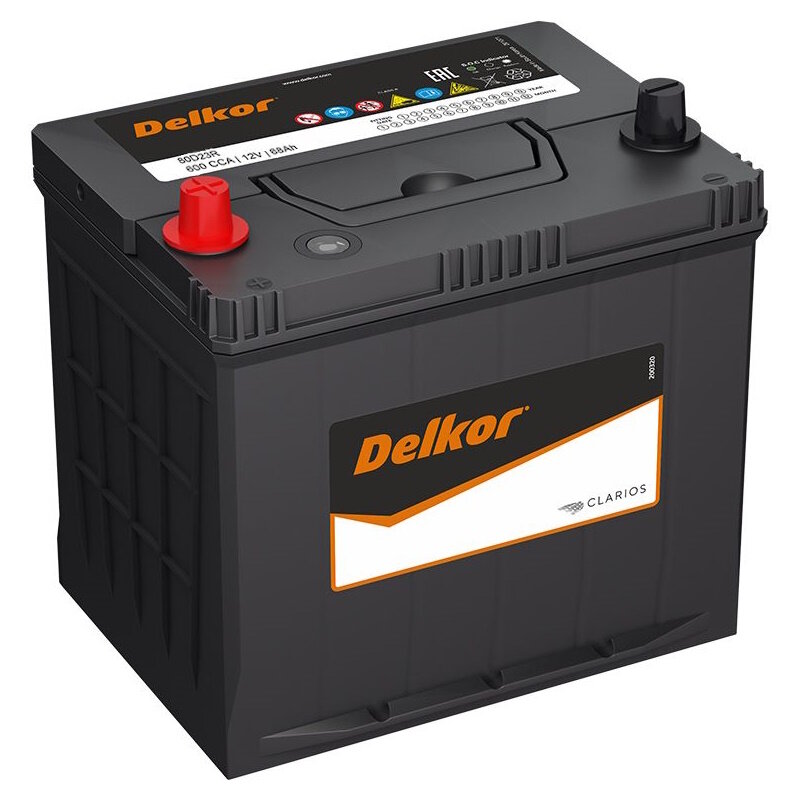 Автомобильный аккумулятор DELKOR 80D23R 68Ач 600А прямая полярность (+ -) интересное: