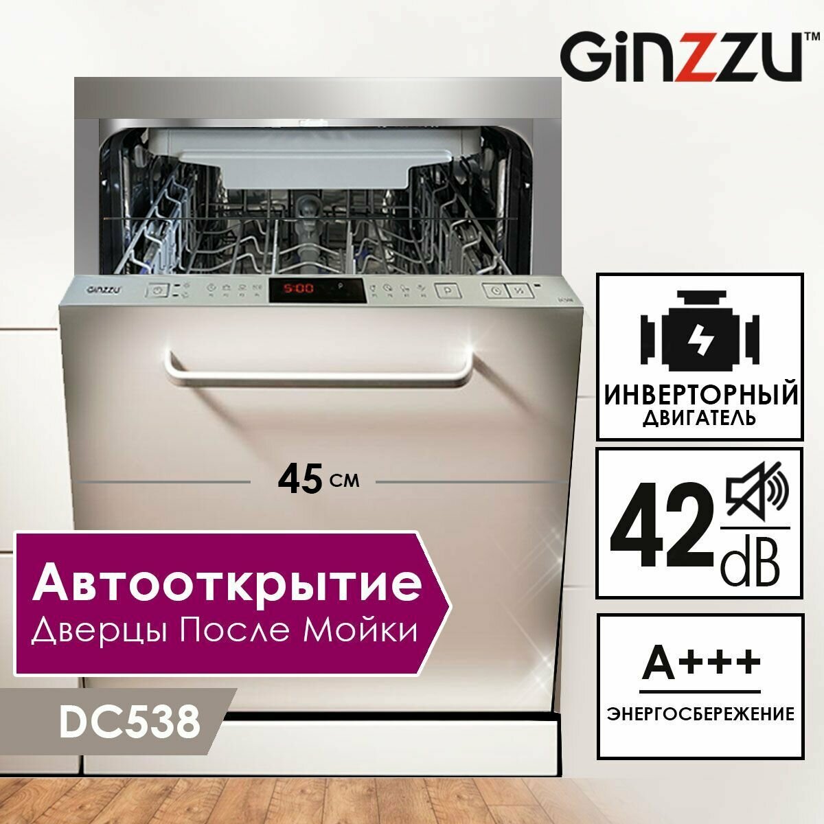 Купить Встраиваемая посудомоечная машина Ginzzu DC538, 45см, 10 комплектов, автооткрытие, инверторный мотор, 42dB