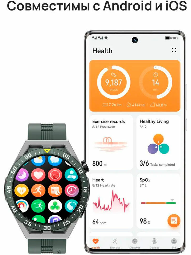 | Отзыв: | Купила сыну, у сына телефон, не хуавей, часы сразу сконнектились и связь не теряют. Уведомления все приходят оперативно, экран большой, так что они даже читабельны. Фирменное приложение Huawei health работает без багов, расширяет функционал часов. Статистику тренировок говорит в нем смотреть удобнее, очень много показателей видно. |