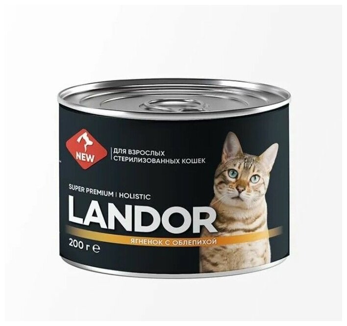 Полнорационный влажный корм LANDOR для стерилизованных кошек, ягненок с облепихой, 200г х 6шт.