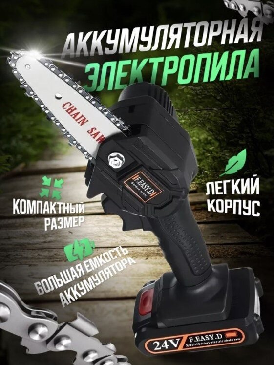 Цепная электрическая мини-пила/24Вт /легкая и удобная/защита двигателя/Li-Ion/черный интересное:
