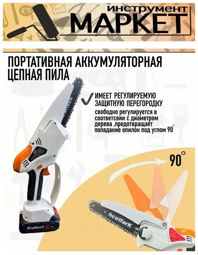 Пила цепная аккумуляторная Kraftech 48V + 3 цепи В подарок. интересное: