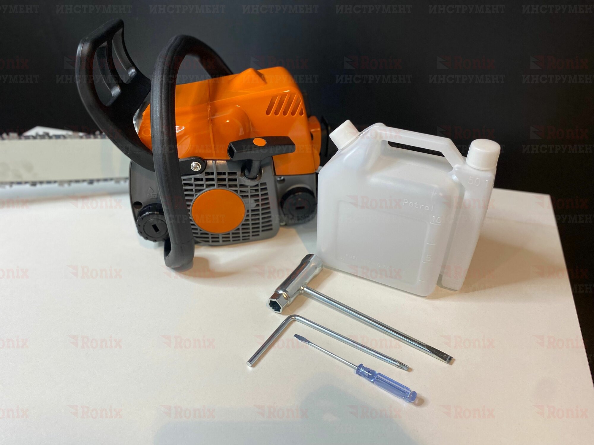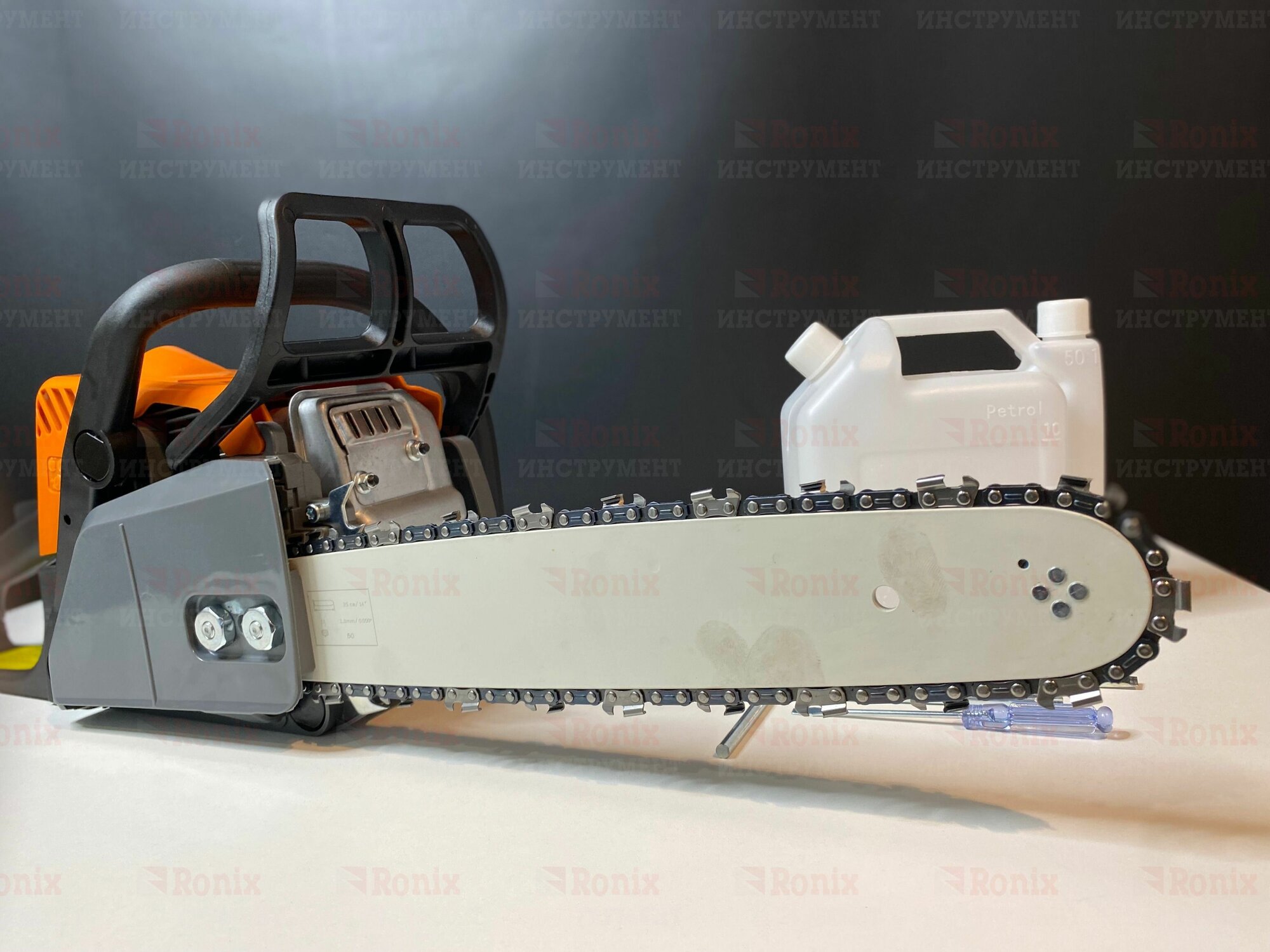 | Комплект поставки | Бензопила цепная; Шина 14" 35см; Цепь 3/8" 50 зуб; Емкость для смешивания топлива; |