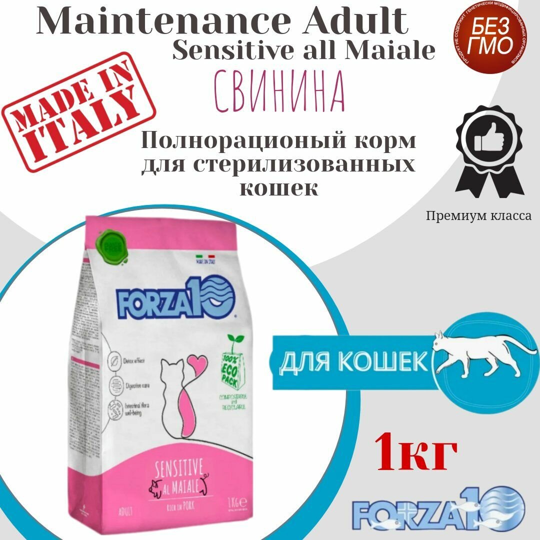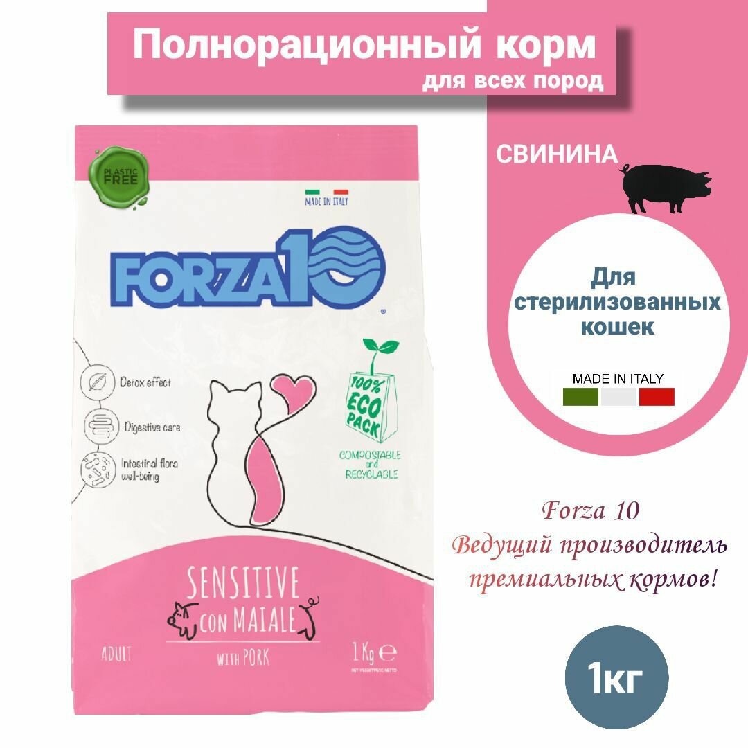 Купить Корм сухой Forza10 Maintenance ADULT SENSITIVE c свининой, для взрослых кошек и как продолжение после периода диеты кормами из линейки Diet или Active,1 кг