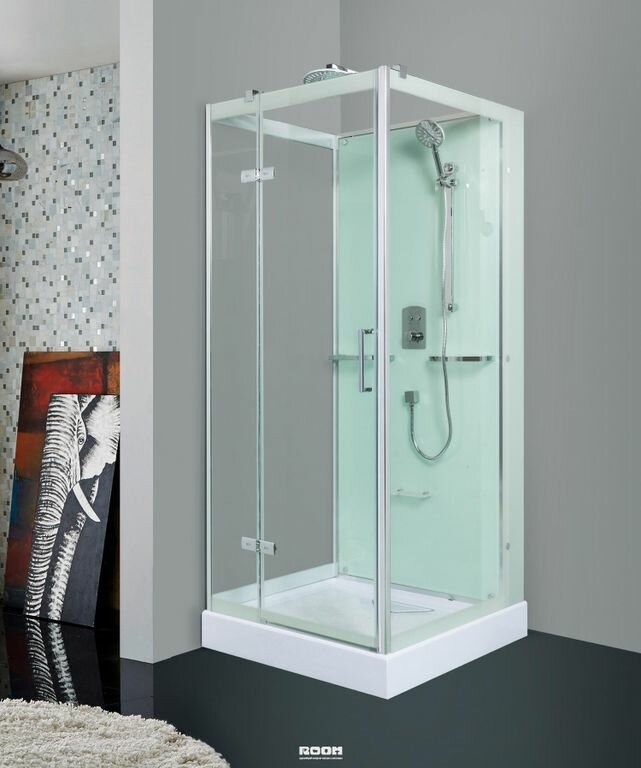 | Плюсы: | Полностенный тип, распашные двери, тропический душ. |