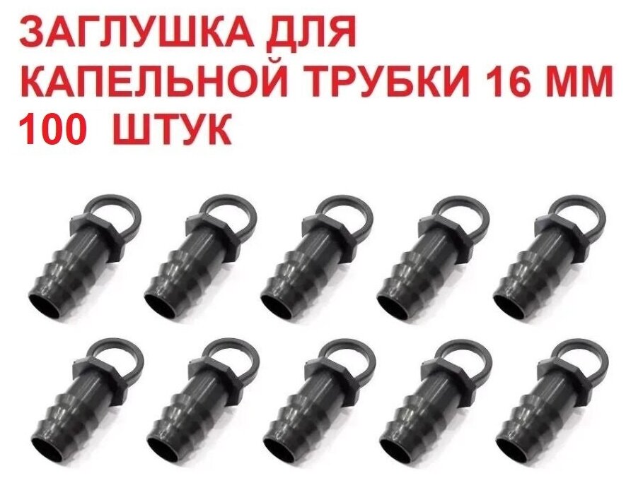 Заглушка для капельной трубки, диаметр 16 мм - 100 штук. Фитинги для организации системы капельного полива. интересное: