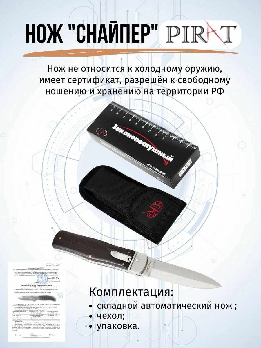 Складной автоматический нож Pirat "Снайпер", ножны кордура, длина клинка 8,5 см интересное: