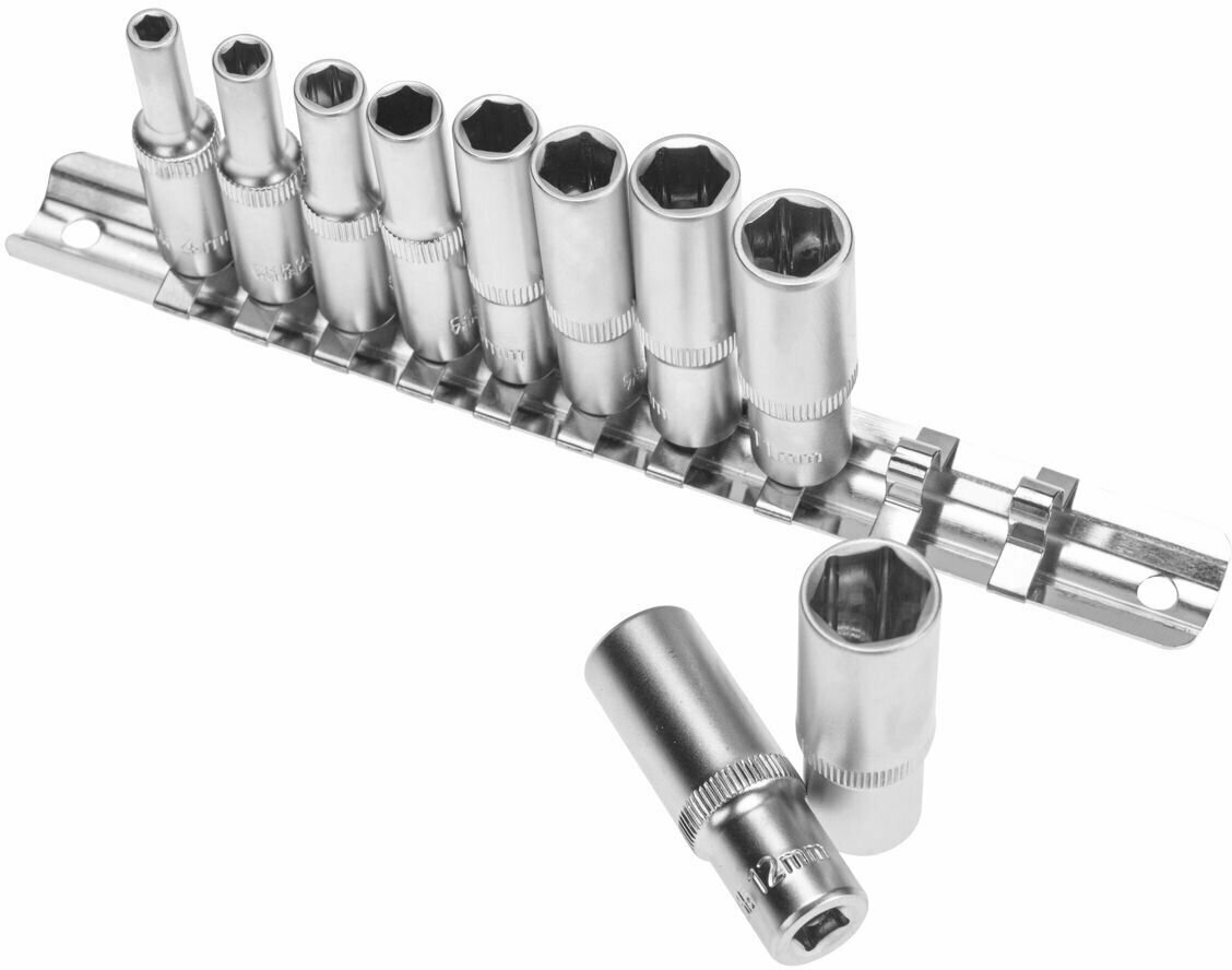 Набор удлиненных торцевых головок 1/4, шестигранные, CrV, 10 шт., 4-13 мм