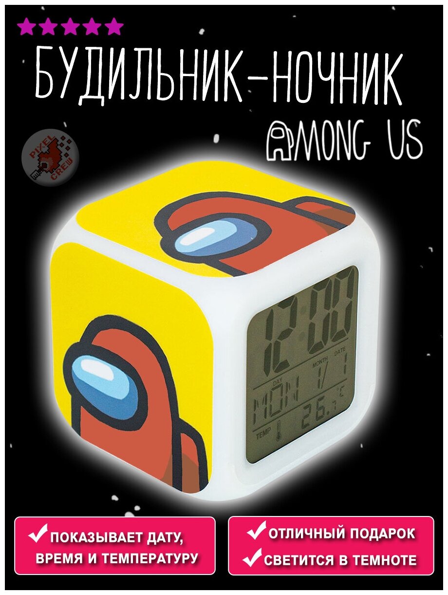 Часы-будильник Among Us с подсветкой (красный) интересное: